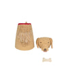 Meet Luna and give her a big hug! The cuddliest companion and your favorite storage buddy. This is the largest handmade basket in the Lorena Canals collection, inspired by the friendly silhouette of a Golden Retriever. Discover her playful details: canvas-lined ears, hand-knotted eyes with fluffy eyebrows, an interactive snout with a roll-out tongue, and a movable mouth. She even comes with a little toy bone attached to the label and a red collar for that final heartwarming touch.