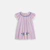 - Hand-embroidered smocking at the neckline.